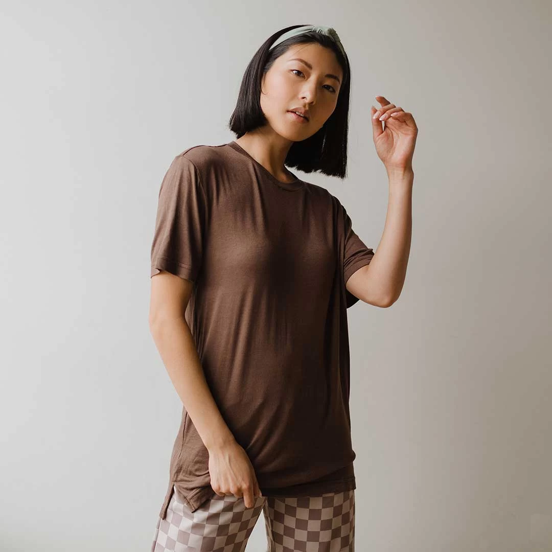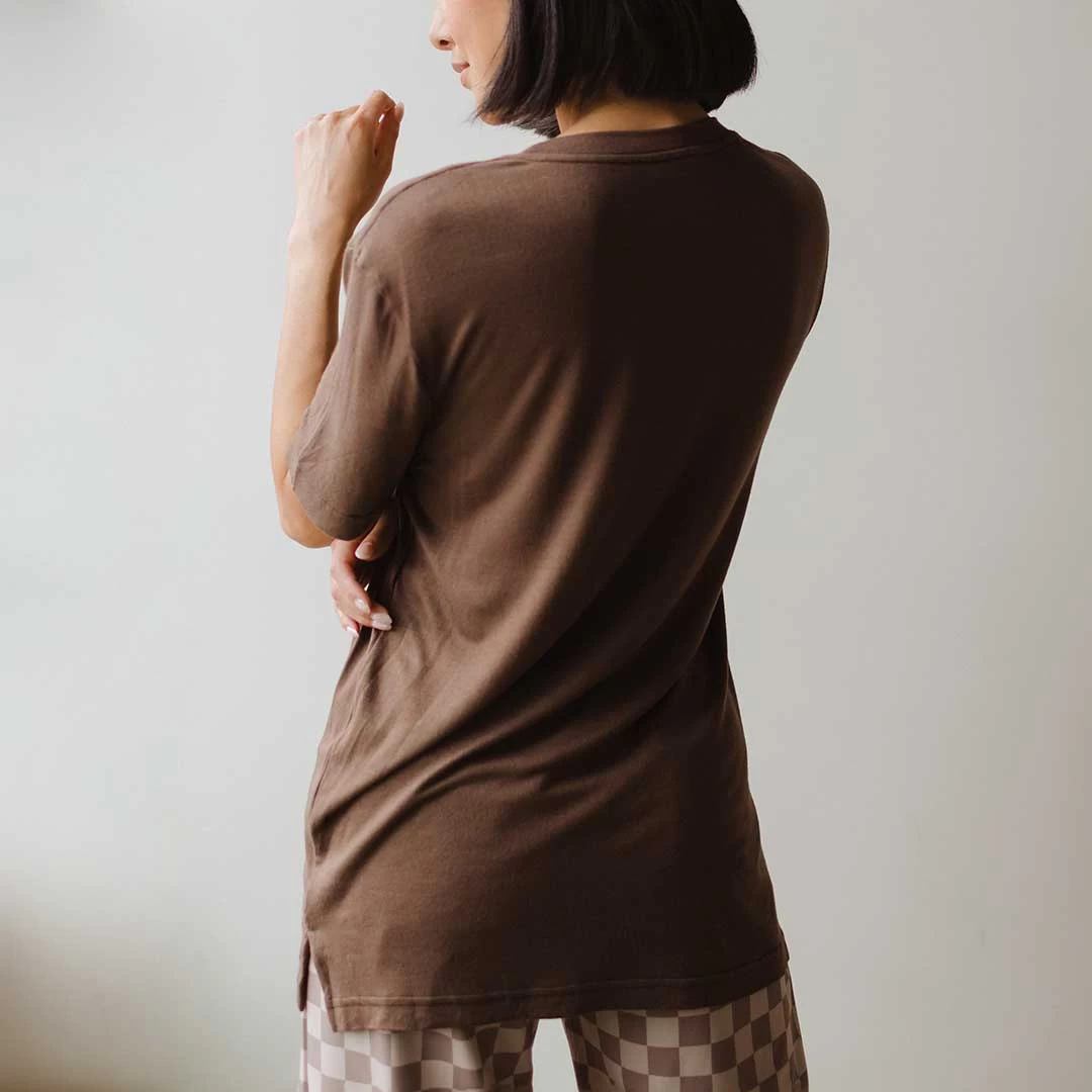 Our new cocoa colored Oversized Tee is cozy, classy, and oh-so-cute. A longer fit and the softest fabric means all-day comfort and style!