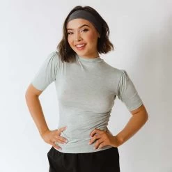 Our Puff Sleeve Tee is a classic top with a touch of fun! Featuring a playful puff sleeve and a dreamy aqua shade, this mock neck tee will have you feeling comfy and cute in no time.