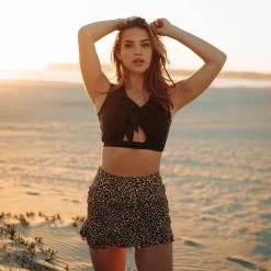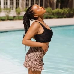 Who doesn’t love to feel slim in a swimsuit? Your quick-fix for any swimwear stress, our Swim Slim Skirt creates a slenderizing effect for the hips and completely eliminates the question of inner thigh exposure! With an adjustable ruched upper panel that can be folded over or extended according to your preferred skirt length and a flirty ruffled hem to keep your look feminine, this swim mini cures coverage concerns and keeps you comfortable and cute all at once! Built-in bikini bottoms.