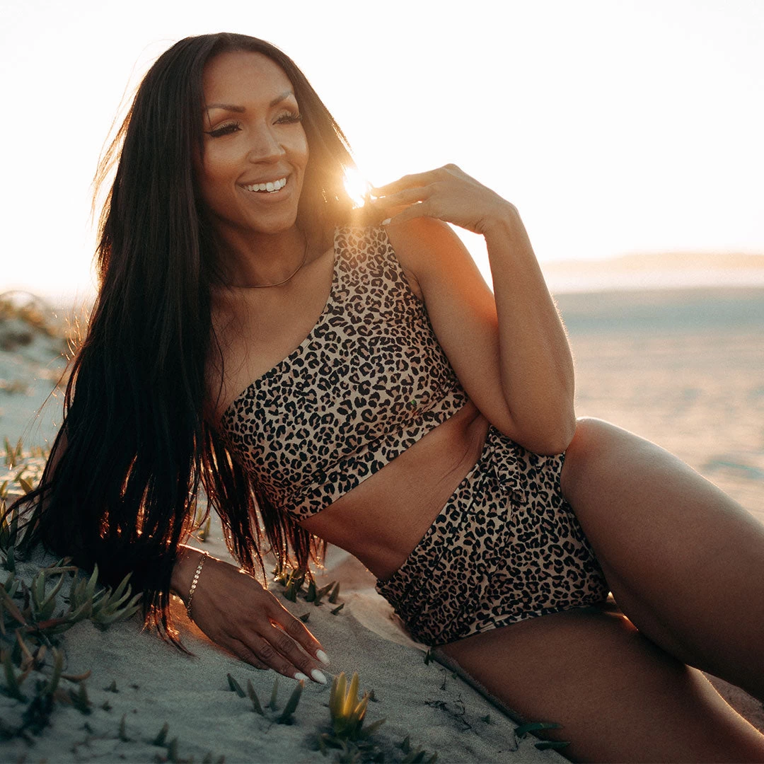A one shoulder wonder meetsย cheetah for a swimsuit that’s almost too good to be true. Eye-catching and head-turning, this Albion Fit swim top provides support and makes a statement all at the same time. The shelf bra and fully lined crop provides support and coverage.