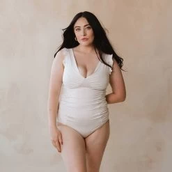 With perfectly placed ruching and a gorgeous deep V, our Riptide One-Pieceย is an all-time Albion favorite! In a gorgeous Ivory white, this suit is chic, stylish, and incredibly flattering.