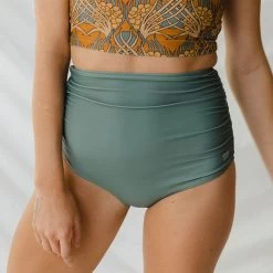 We like them RUCHED! So fancy, so sophisticated, and oh so flattering. With a high waist and a full coverage style, these bottoms are fit to flatter every body. In Sea Salt, these Ruched High-Waisted bottoms are a swimwear must-have!