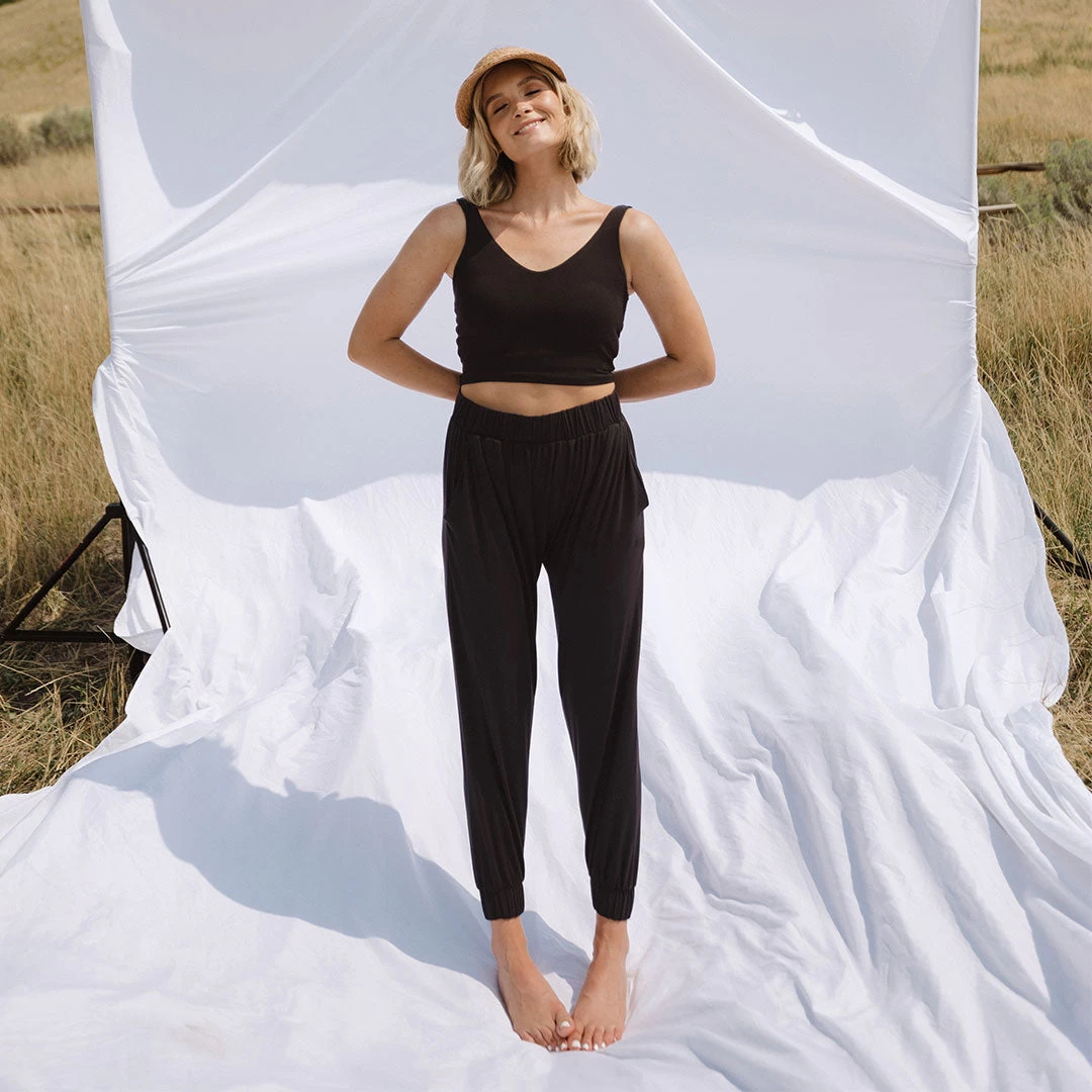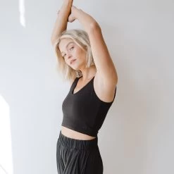 A more relaxed version of our Focus Tank, the Serenity Focus Tank is one you’ll find yourself lounging in, all day long! Perfect for a relaxing yoga session or taking it easy at home, the v-neckline and scoop back are a flattering fit for any body. Made with a built in shelf bra and supportive straps, and in a classic black, so you can feel your best no matter where you go!