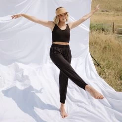 These joggers feel like pajamas, but are cute enough to wear any time of day. Made from the softest bamboo fabric, you’ll love slipping into these for a cozy day on campus, or while running errands around town. Plus—the elastic waist, drop crotch, cuffed ankle, and front pockets make these black joggers extra comfy and versatile.