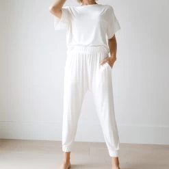 These joggers feel like pajamas, but are cute enough to wear any time of day. Made from the softest bamboo fabric, youโll love slipping into these for a cozy day on campus, or while running errands around town. Plusโthe elastic waist, drop crotch, cuffed ankle, and front pockets make these joggers extra comfy and versatile.ย
