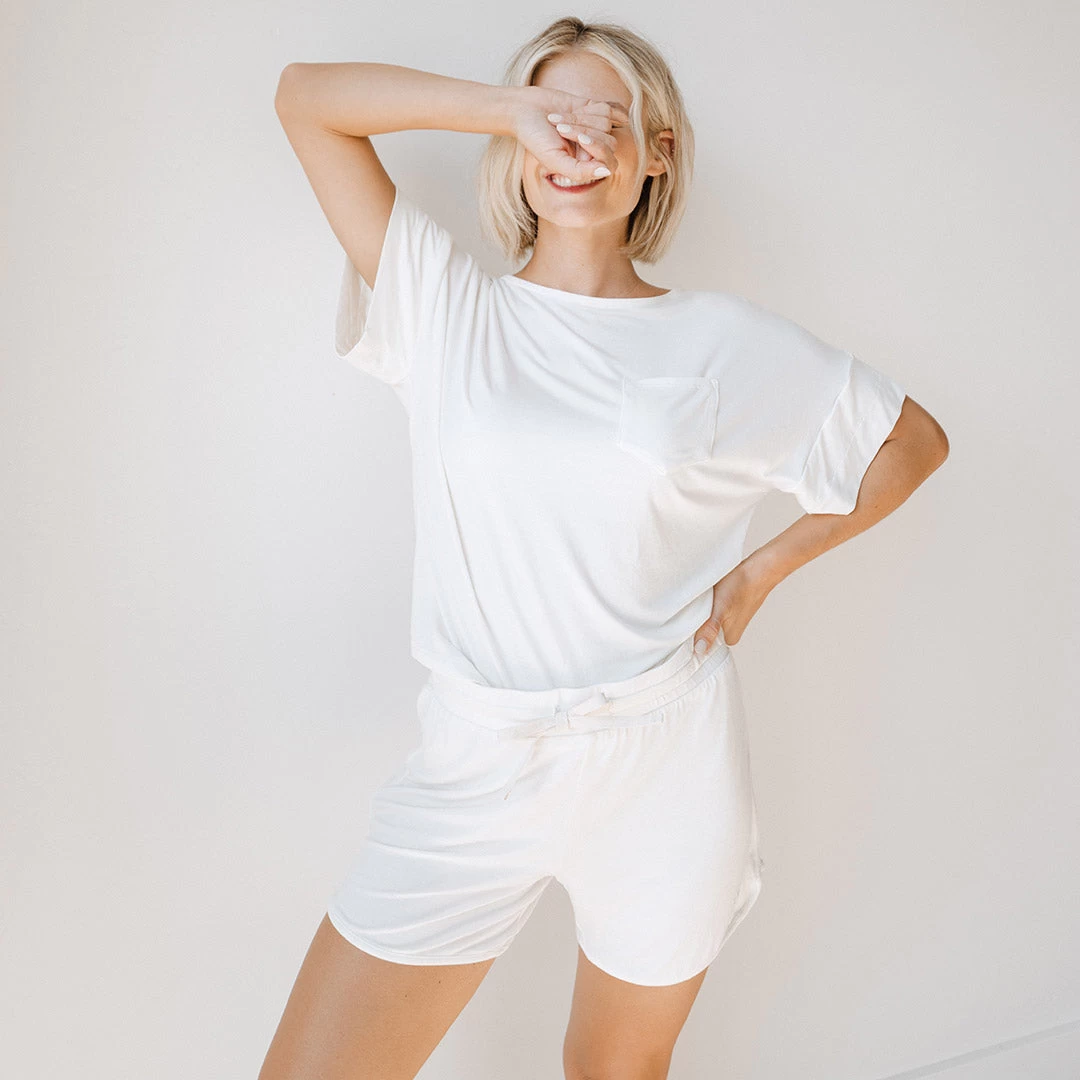 Need some cozy go-to shorts for everyday wear? Theseย ivory shorts are made from the softest, sustainable bamboo material. Youโll love the silky smooth fabric, adjustable waistbandโperfect for working out, lounging, or wearing over your swimsuit.ย