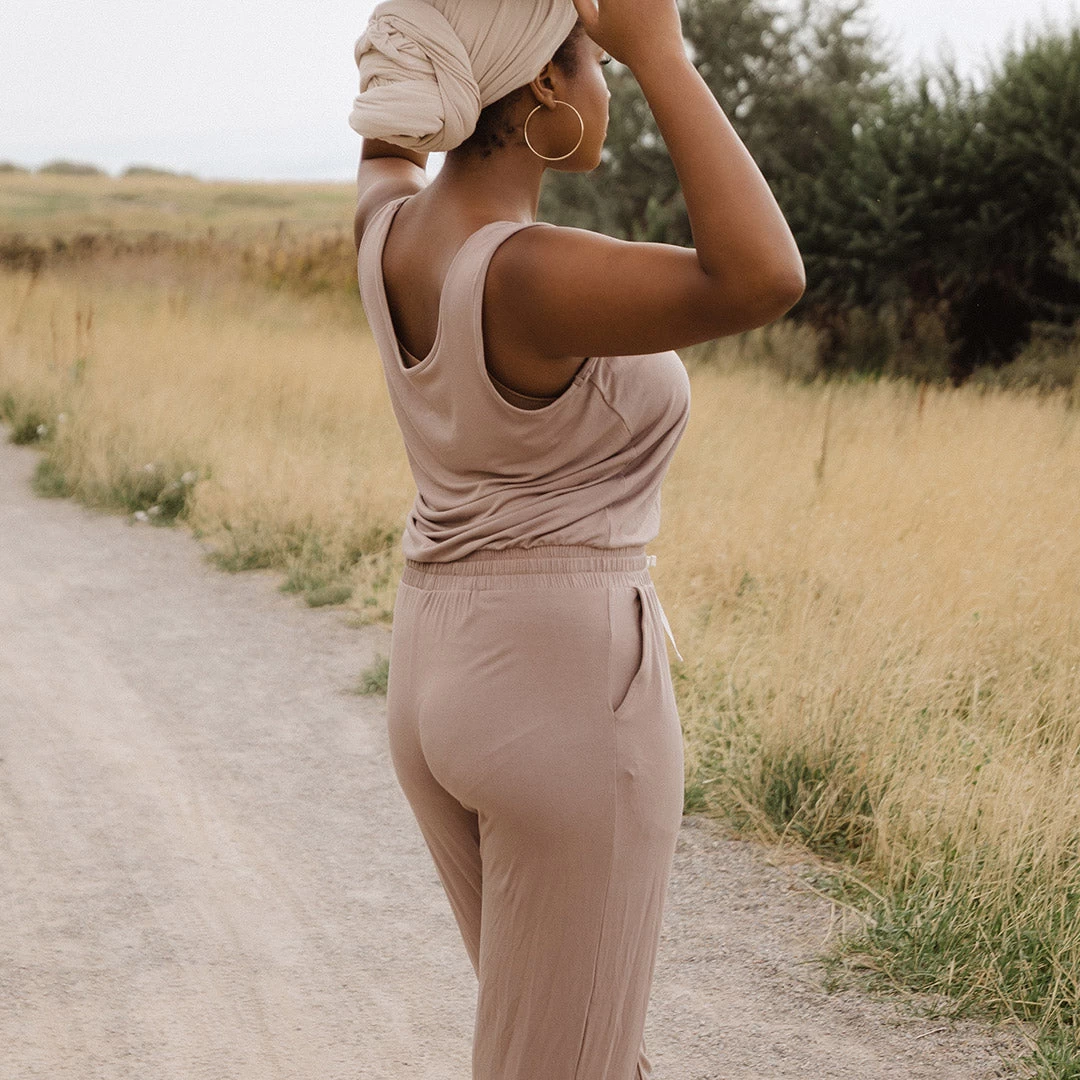 The softest neutral for the softest fabric! Everyone’s favorite tankย jumpsuitย is complete with a feminine scoop neckline and figure flattering elastic and drawstring waistband. You’ll never want to take this one and done outfit off! Wear it to bed, to run errands, or for a day out and about. Wherever you go or whatever you do, you’ll feel and look your absolute best.