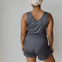 Your new favorite romper in a gorgeous grey! This women’s romper is made in our best-selling, bamboo fabric you have to feel to believe. So soft you’ll never take it off! Featuring our signature elastic and drawstring waistband plus a flattering scoop neckline, this romper is exactly what you’ve been looking for! Pair with your favorite sneakers or sandals for wearing out and about.