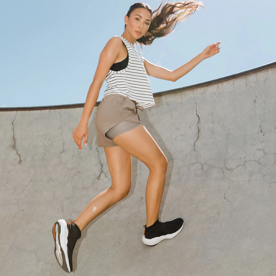 Futuristic and sporty, this soft pull-on bootie is an easy way to dress up your casual look. With a bungee at the back to give you a “just right” fit, this amazingly comfortable shoe is perfect for long travel days and running around town.