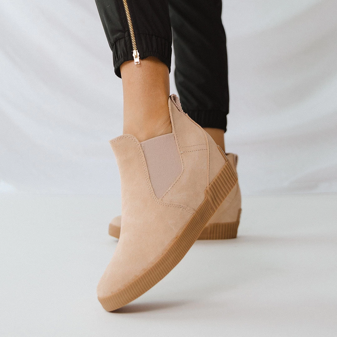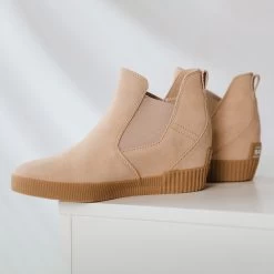 A fresh style inspired by SORELโs classic Out โN About boot, this slip-on wedge has a go-anywhere, do-anything attitude. It features a breathable suede upper boosted by the non-stop comfort of an EVA foam footbed. A two-tone vulcanized rubber sole catches the eye โ and delivers extra grip.