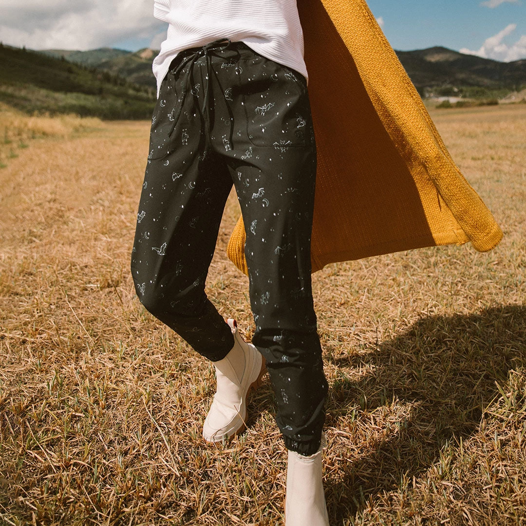It’s spooky season and we are here for it! Our all-new print features crescent moons, twinkling stars, and little bats that are perfect for all your Halloween activities. No tricks, all treats with these Hocus Pocus inspired Jetsetters! Ft. a silver zipper!
