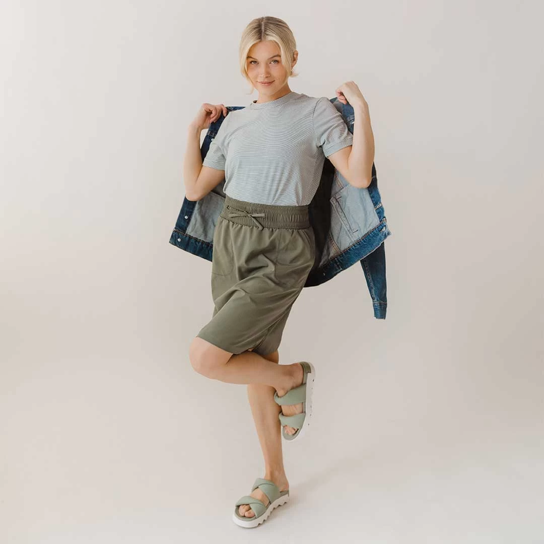 fabricย andย gorgeous green hue, this women’s knee length skirt is a versatile, and comfy, wardrobe stable.