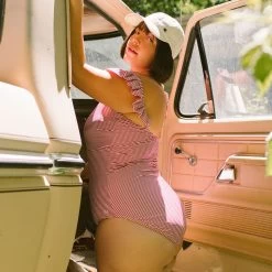 We’re welcoming back one of our favorite styles (hi, Mimi!) in a new red pinstripe print! Full coverage and classic style, this ruffle one-piece will bring out all of your patriotism and confidence!