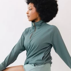 We made our Gotta Run 1/4 Zip pulloverย to last long after your workout ends! This women’s quarter zip features a dazzling gold zipper, and roomy pockets in a gorgeous grey blue shade we LOVE!ย