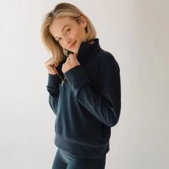 It’s versatile, comfy, and your new favorite pullover! It’s our Gotta Run jacket in a stunning navy shade with a gold quarter zip that POPS! Not to mention pockets to hold all of your stuff on those days you just Gotta Run.