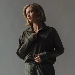 Introducing the perfect throw-on-last-minute, goes-with-everything pullover you’ve been waiting for… in Olive! This top is breathable and light, making it the perfect preย and post workout sweatshirt. Featuring a slightly cropped zip and gorgeous gold zipper.