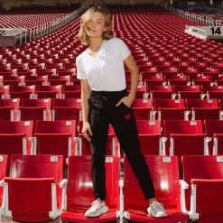 Our sleek and comfortable black joggers with a crimson pop of team spirit for our Utes! We love the 3″ thick high waistband, back AND front pockets, and the embroidered red University of Utah logo.