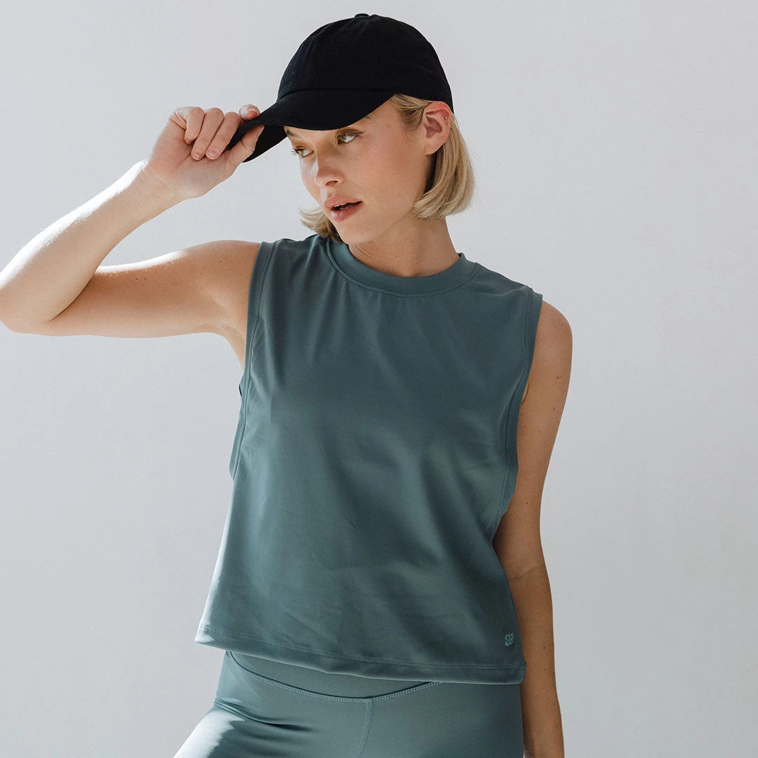 Let’s get moving! Our Venus Tank in Blue Grey is an activewear must-have! The dropped arm hole lets you show off your cute sports bra and the cropped style looksย EXTRAย good with our